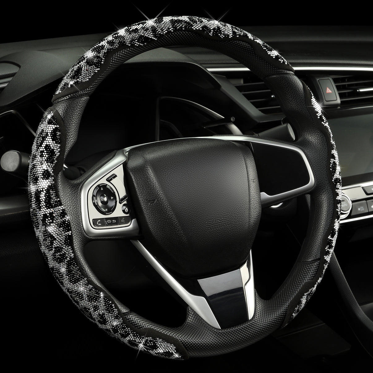 Stylish Leopard Print Design : Unique leopard pattern with sparkling rhinestones, adds a bold and fashionable touch to your car.